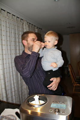 We found out that Silas has anaphylaxis to peanuts and is allergic to walnuts. It is IMPOSSIBLE to find ice cream manufactured in a facility that doesn't also use peanuts, so we invested in a nice ice cream maker. Here is one of our first batches.